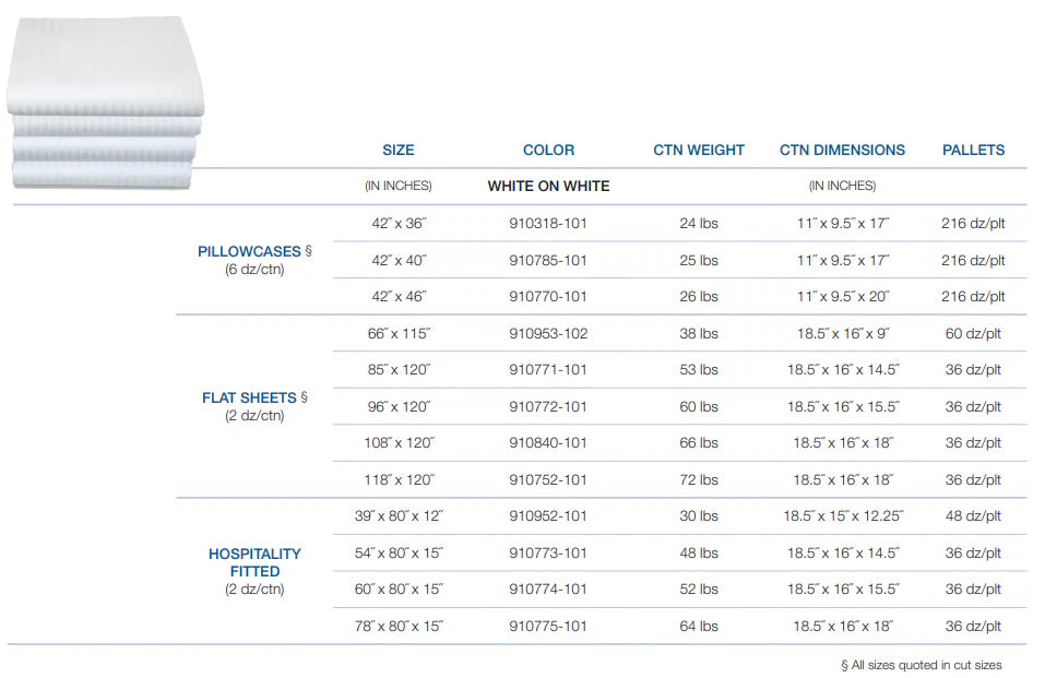 • 42 x 36”, 42 x 40”, 42 x 46” Pillowcases - 3” Hems